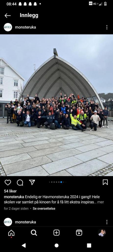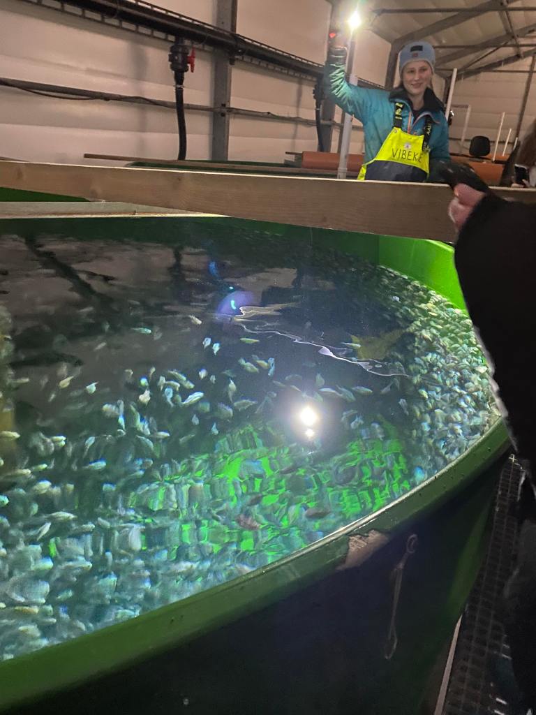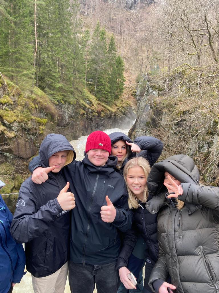 Tirsdag: Vi var på Hausvik og Kvåsfossen. Vi så hvordan lakseoppdrett foregikk, og litt om hvordan man forebygger lakselus. På Kvåsfossen lærte vi om laksehistorien og vi fikk omvisning på laksesenteret. Vi så hvordan laksetrappene var bygd og hvordan de fungerer.