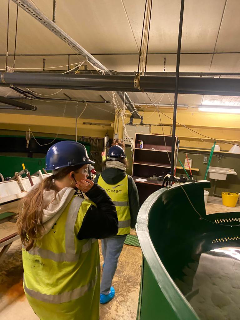 Onsdag: Vi besøkte blått naturbruk i Flekkefjord, der kjørte vi båt og så på lakseringer (lakseoppdrett). Vi foret laksene med mat i lakseringen, og tok opp teiner. Vi var i Kvinesdal, og besøkte fabrikken Eramet. Eramet hadde et foredrag for oss som bidro til mindre forurensing, og hvordan de gir ut spillvarmen til anlegget Stolt Sea Farm. De hadde omvisning for oss, og viste hvordan de produserte piggvaren gjennom en lang prosess. Vi fikk sett hvordan piggvaren ble slaktet, og hvor lenge en prosess varer fra de er små til de blir store.