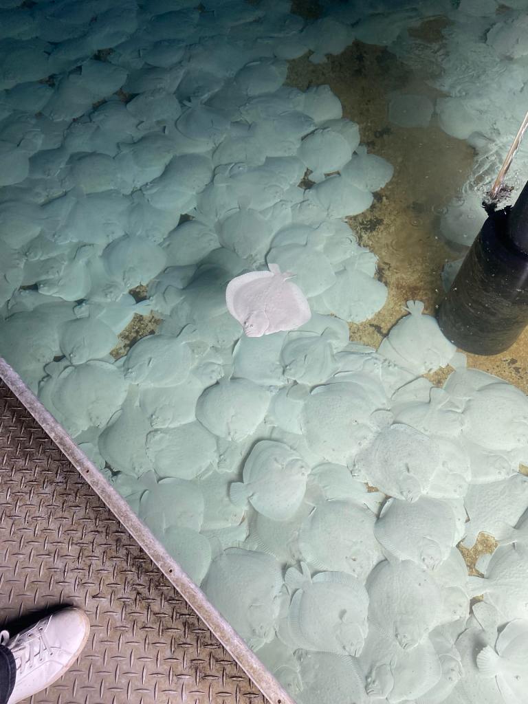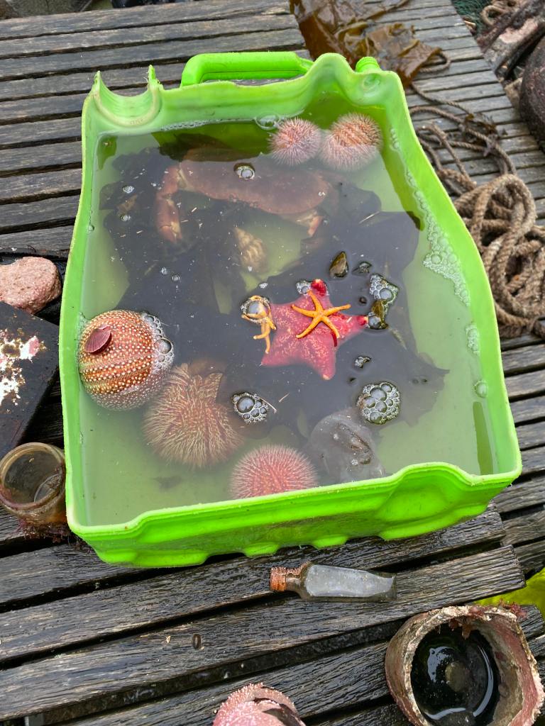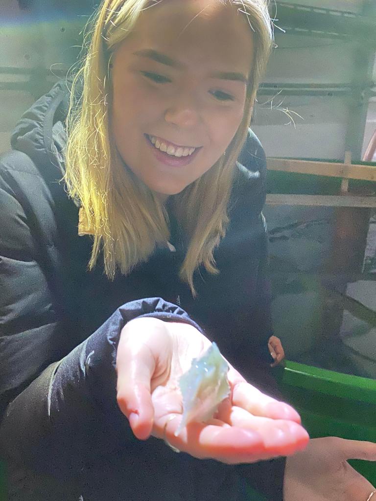 Tirsdag: Trinnet vårt var delt opp i to grupper. Gruppe 1 var på badehuset sammen med marinbiolog Heriette Hultmann og de hadde lagd en fjærebingo til oss. Det var flere ting man kunne gjøre på badehuset: fisking, bingo og båttur. Ingen av fiskerne hadde noe særlig fiskelykke, men de som var i båt fikk en hai da de var på båttur. Da vi kom opp igjen til skolen åpnet vi haien opp og den hadde mange babyhaier inni seg. Gruppe 2 besøkte Skjolnes renovasjonsanlegg og silingsanlegget.