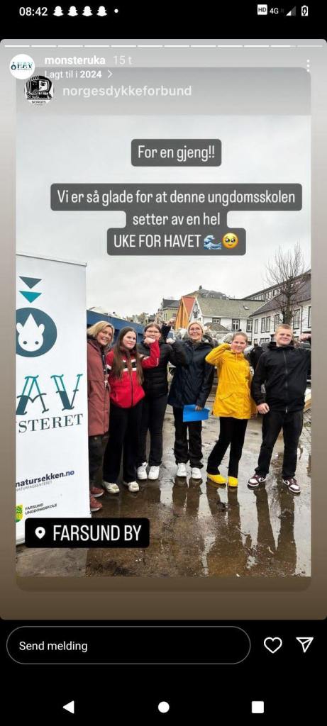 Onsdag: Vi møtte opp på rutebilstasjonen og tok buss til Sigersvoll der vi plukket søppel hele dagen. Vi ble fordelt på forskjellige områder der vi kunne plukke søppel. Første gruppe kjørte med båt til andre siden av en bukt. Der var det veldig masse søppel og døde fugler. Det var helt sykt å se hvor ille det faktisk var i Norge. Noen ble på land og plukket der. Skjærgårdstjenesten stilte opp med pølse, brus og båt.